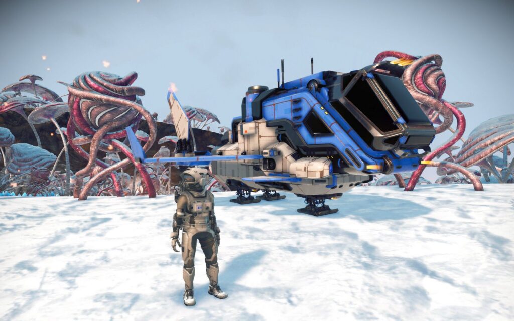 Das wichtigste Werkzeug im Spiel ist das „Multitool“. Es kann als Waffe, Scanner und zum Bergbau eingesetzt werden. Im Wesentlichen erfüllt es die Aufgaben der aus Star-Trek bekannten Geräte Phaser und Tricorder.